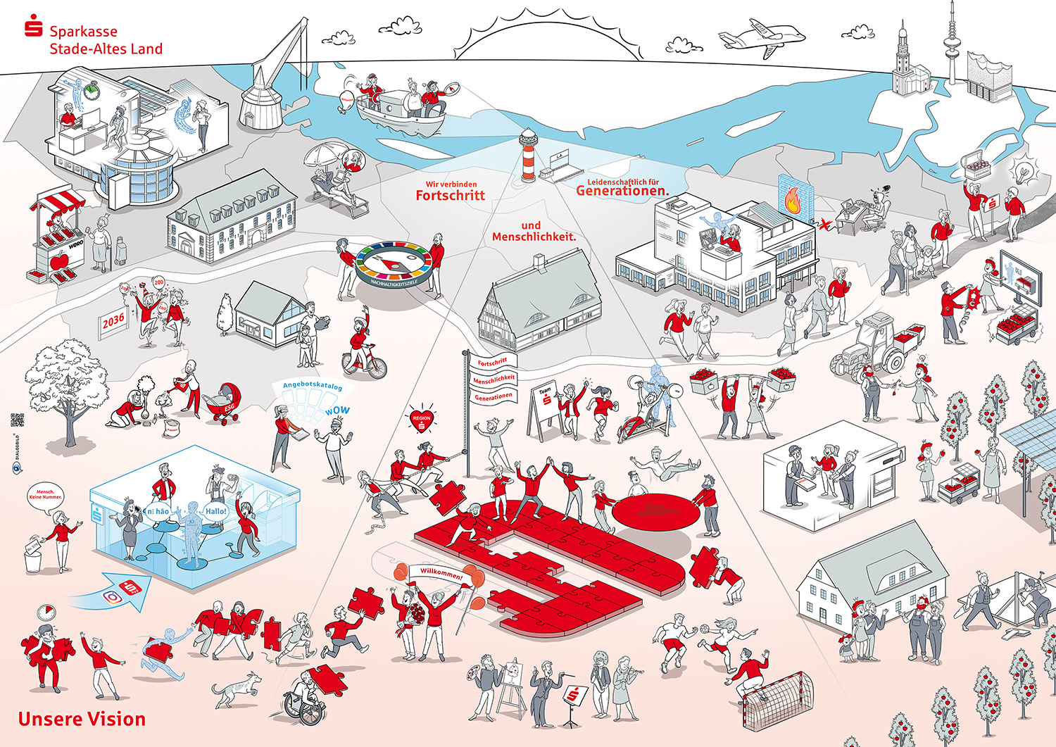 Zur Visualisierung ihrer Zukunftsvision "Wir verbinden Fortschritt und Menschlichkeit. Leidenschaftlich für Generationen." hat sich die Sparkasse Stade-Altes Land an DIALOGBILD gewandt.