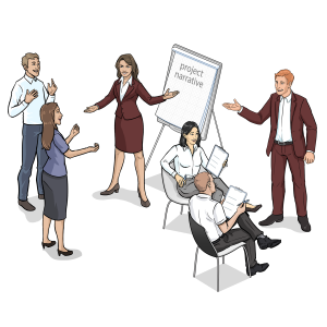 The scope of the project is determined and, within this framework, objectives and methods are defined, information is gathered and workshops are held.